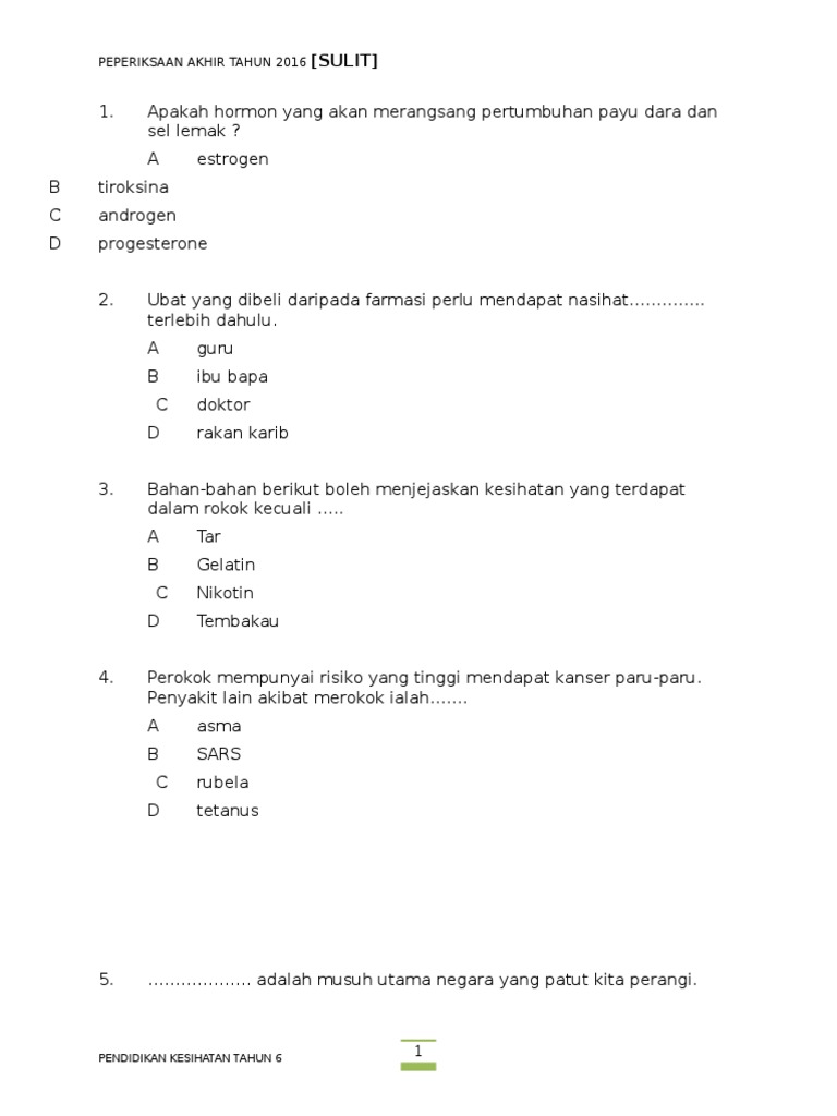 Soal pts pjok ini sudah dilengkapi dengan kunci jawaban. Klik ikon tersebut untuk muat turun. It is compatible with all android devices (required android 4.0+) and can also be able to install on pc. 0 ratings0% found this document useful (0 votes). Koleksi soalan pentaksiran pendidikan kesihatan.